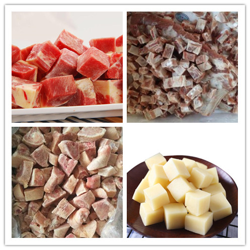 剁骨機可以切凍肉帶骨或者不帶骨的原料切成塊狀或者條狀,適合于二維切割(長度和寬度)