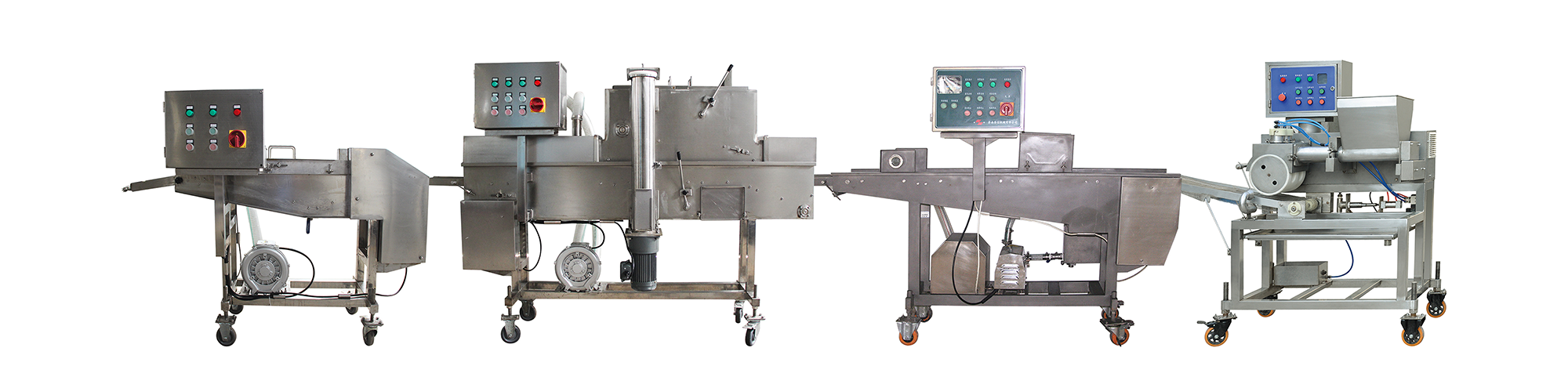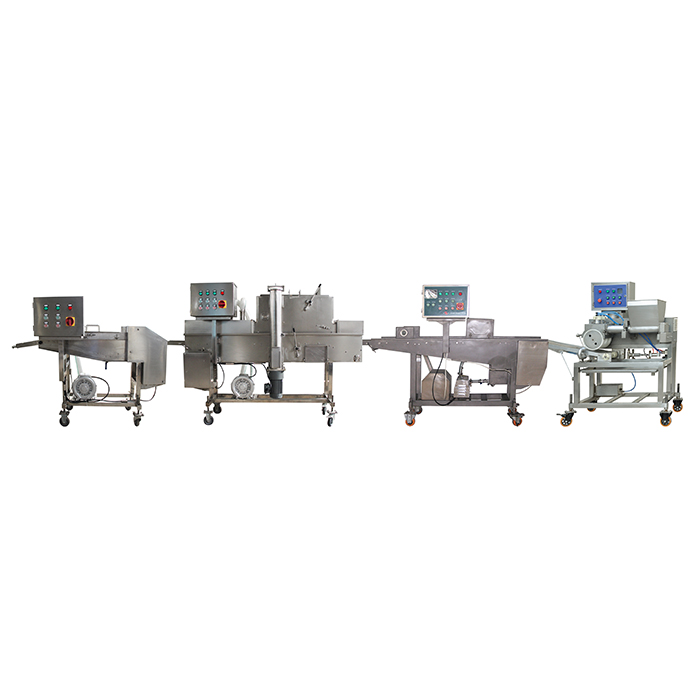 雞塊生產(chǎn)線把混合好的原料經(jīng)過成型,上稀漿,上粉,上稠漿,油炸,速凍等工藝做出不同厚度不同規(guī)格的雞塊。模具可以生產(chǎn)不同形狀的產(chǎn)品(如三角形,橢圓形,卡通雞塊形狀,不規(guī)則形狀)通過模具更換產(chǎn)品??ㄍu塊生產(chǎn)線適用于肉類、水產(chǎn)、蔬菜、奶酪以及它們混合料。肯德基雞塊生產(chǎn)線的需要配置前處理設備和后處理設備:絞肉,混合,油炸包裝等設備,麥當勞雞塊生產(chǎn)線與這些配套設備組成一條完整的快餐調理生產(chǎn)線。