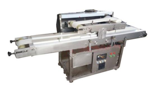 鮮肉切片機(jī)切的是對雞胸肉的橫向(水平)整肉一次性多片切割,還可以一次性把整個(gè)雞胸肉切成蝴蝶形或者心形的形狀也就是把一塊完整的雞胸肉放在機(jī)器這邊的傳送帶,傳送帶傳送過去后這一塊肉就全切好了。