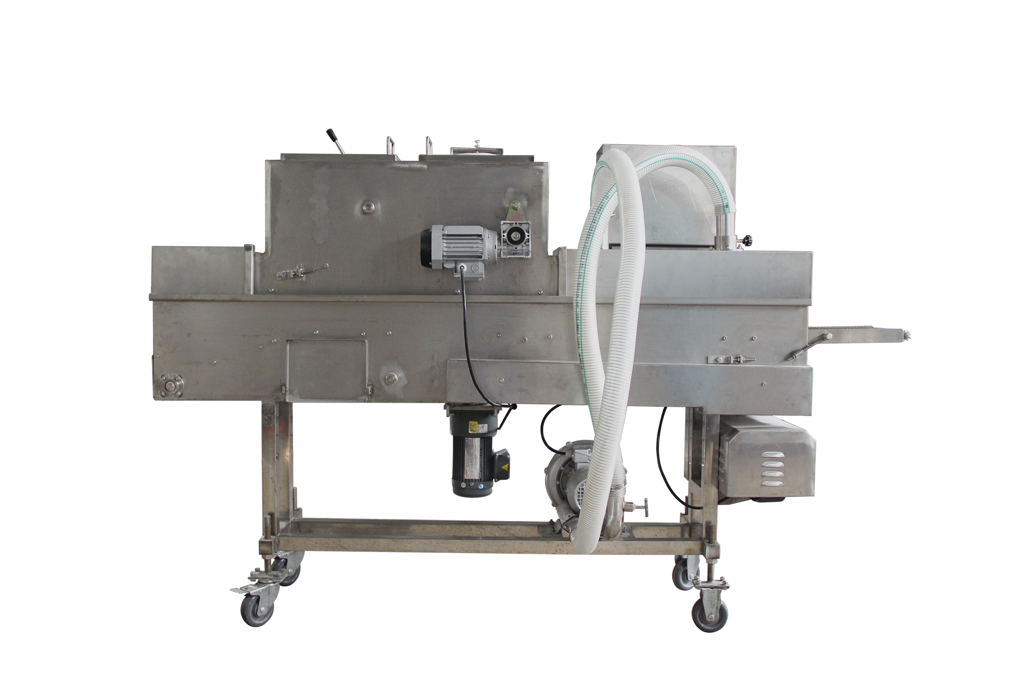 掛粉機與上漿機、上面包屑配合使用,魷魚圈裹粉機機也可單獨使用??梢詫κ袌錾狭餍械暮ur,漢堡肉餅、麥樂雞塊、唐揚塊,鹽酥雞,魚香漢堡肉餅、土豆餅、南瓜餅、肉串等產(chǎn)品進行上粉處理,是快餐店、配送中心、食品工廠理想的上粉設備