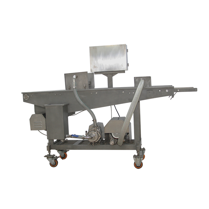 上漿機(jī)是通過漿幕和下部的承漿板把漿液均勻粘附在產(chǎn)品上,通過風(fēng)刀時(shí),多余的漿液被吹掉。然后輸入到下一工序。魚塊掛漿機(jī)適合于雞肉、牛肉、豬肉、魚、蝦等海鮮產(chǎn)品,也適用于上面包屑和上粉前的工藝。雞塊上漿機(jī)可以對(duì)市場(chǎng)上流行的雞排,魚排,漢堡肉餅、麥樂雞塊、魚香漢堡肉餅、土豆餅、南瓜餅、肉串等產(chǎn)品進(jìn)行上漿處理,是食品工廠理想的上漿設(shè)備。