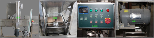 上面包康機是通過料斗里泄出的面包糠和下網(wǎng)帶上的面包糠將產(chǎn)品均勻涂裹在產(chǎn)品上,經(jīng)壓輥壓緊(上下網(wǎng)帶上的面包屑厚度可以方便調(diào)節(jié)),上康后經(jīng)風機,將多余的面包屑吹落。進入下一道程序。