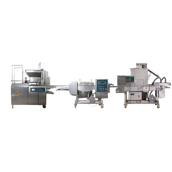 洋蔥圈生產(chǎn)線把混合好的原料經(jīng)過(guò)成型,上濃漿,上康,油炸,速凍等工藝做出不同厚度不同規(guī)格的肉餅。模板可以生產(chǎn)不同形狀的產(chǎn)品(如圓形,三角形,橢圓形,卡通雞塊形狀,不規(guī)則形狀)的洋蔥圈,通過(guò)模板更換產(chǎn)品。洋蔥圈生產(chǎn)線適用于蔬菜、奶酪以及它們混合料。蔬菜洋蔥圈生產(chǎn)線的需要配置前處理設(shè)備和后處理設(shè)備:切丁,混合,油炸包裝等設(shè)備,