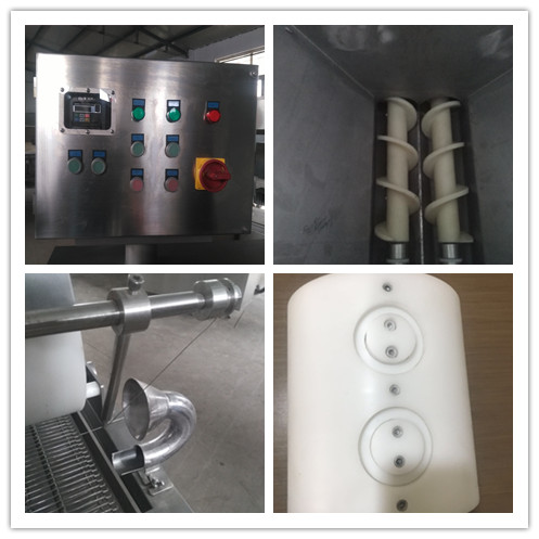 1.整機304不銹鋼及食品級非金屬材質(zhì)加工制造 2.PE 材料符合食品級材料 3.產(chǎn)品重量一致,成型效果好 4.帶噴水裝置,去掉個險上的殘渣