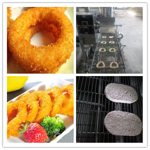 滾筒魷魚圈成型機可以做不同直徑大小的魷魚圈和洋蔥圈,它可以連接不同涂裹設(shè)備生產(chǎn)土豆餅,雞肉餅,牛肉餅和雞塊等不同產(chǎn)品,更換模具方便,適合于快餐店和小型連鎖店使用。